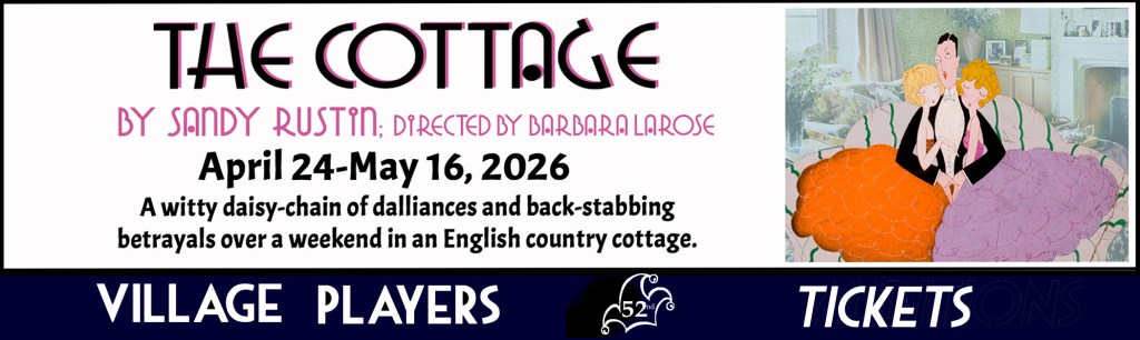 Our 5th and final play of the season – THE COTTAGE by Sandy Rustin – is now in rehearsals ! For details, click on image below. . . .