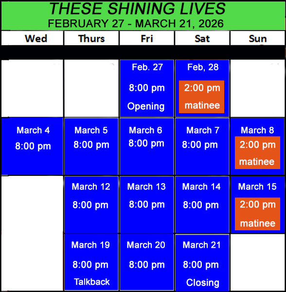 To find out more about THESE SHINING LIVES – our fourth show of the season – click on image below. . .